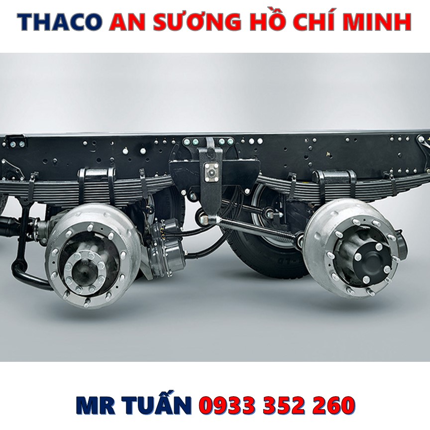 Hệ thống treo sau: phụ thuộc, nhíp lá, balance cân bằng. Balance có kết cấu đơn giản, độ bền cao, dễ dàng bảo dưỡng sửa chữa. Chế tạo từ thép hàn công nghệ cao, đường kính trục lớn, vỏ cầu có tiết diện dày, khả năng chịu tải cao.
