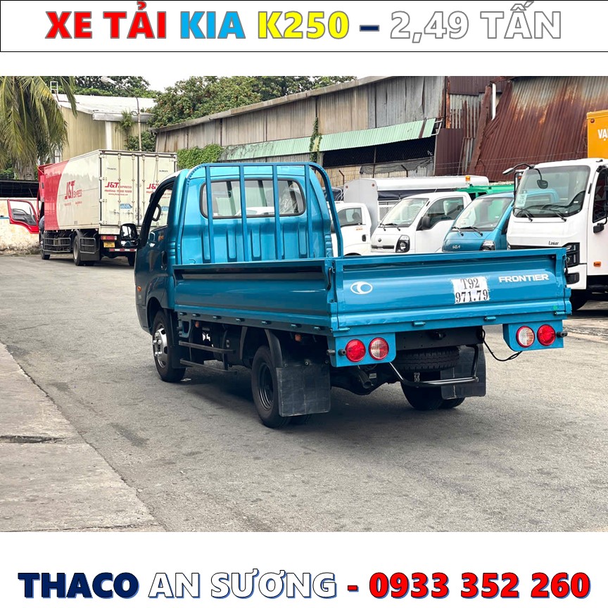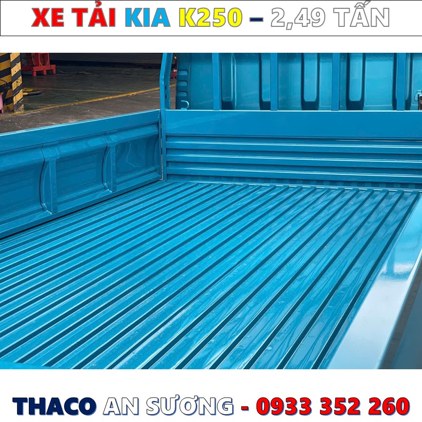 Xe tải kia K250 2,5 tấn thùng lửng có tải trọng là 2.49 tấn được thiết kế với hệ thống phanh an toàn tuyệt đối, hệ thống phanh ABS giúp điều hòa, chống bó cứng lực phanh, hạn chế phanh gấp, xẹt bánh…trong những tình huống gặp phải khúc cua hay phanh xe tức thì.Hệ thống cân bằng điện tử ESC ở phanh xe giúp xe đạt được sự ổn định, tránh bị mất lái, văng đuôi xe hay những tình huống lật xe khi thắng gấp, khúc cua... được bán chạy nhất là mẫu thùng dạng đóng từ thùng lửng lên thùng mui bạt, dạng mở 3 bửng. Với mẫu thùng này sẽ giúp chiếc xe cứng cáp hơn, bảo vệ hàng hóa khỏi gió mưa tốt hơn vì các vách được gia cố bằng các tấm tôn kim loại.