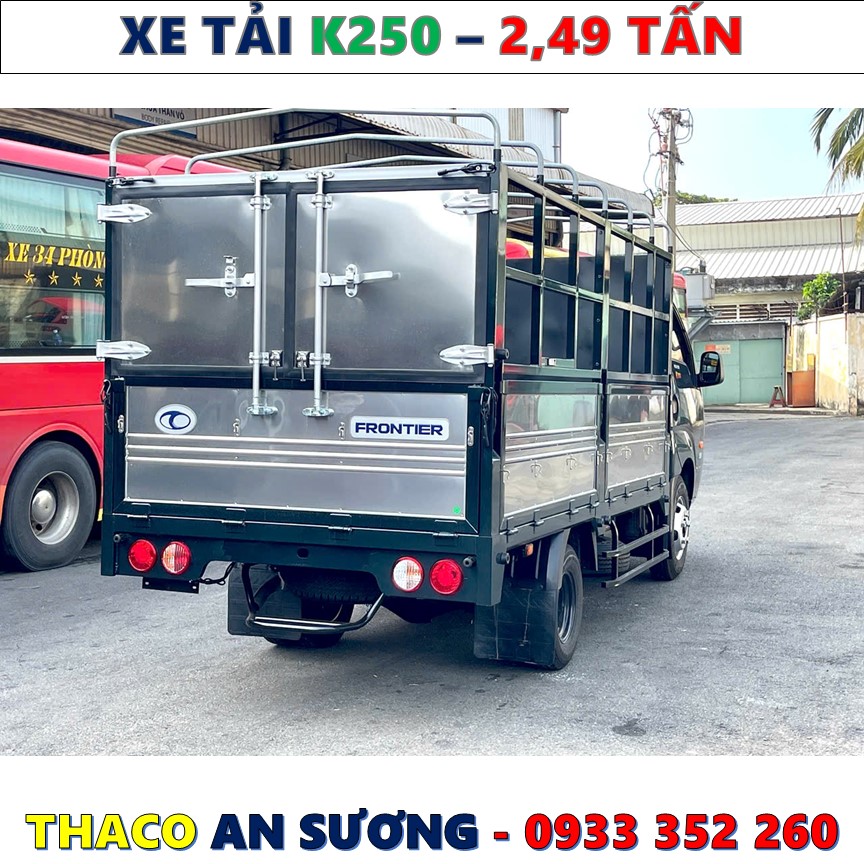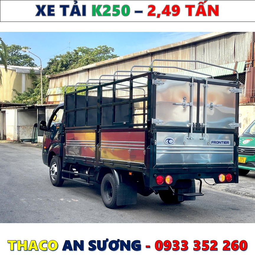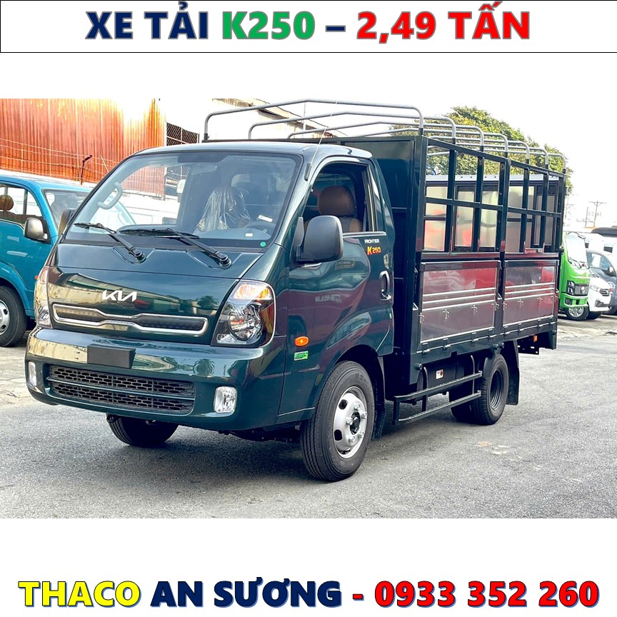 Giá xe tải kia k250 2,5 tấn đang chào bán: 465.000.000 Vnđ chưa bao gồm chi phí lăn bánh và các chương trình khuyến mãi tại khu vực Thanh phố Hồ Chí Minh. Để nhận báo giá chính xác theo từng thời điểm mới nhận vui lòng Liên hệ Hotline : 0933.352.260 gặp Mr. Tuấn để được tư vấn. Thaco An Sương - Mr Tuấn là một trong những địa điểm kinh doanh cực kỳ tiện lợi cho quý khách hàng ghé thăm và bảo dưỡng kỹ thuật trong quá trình sử dụng.