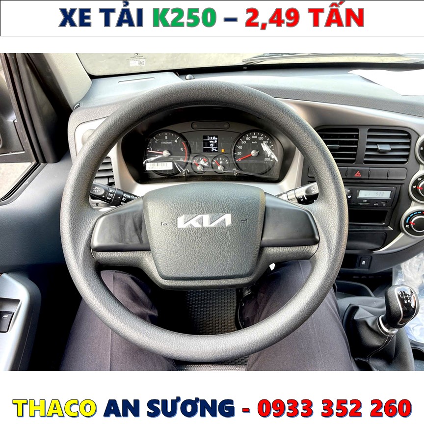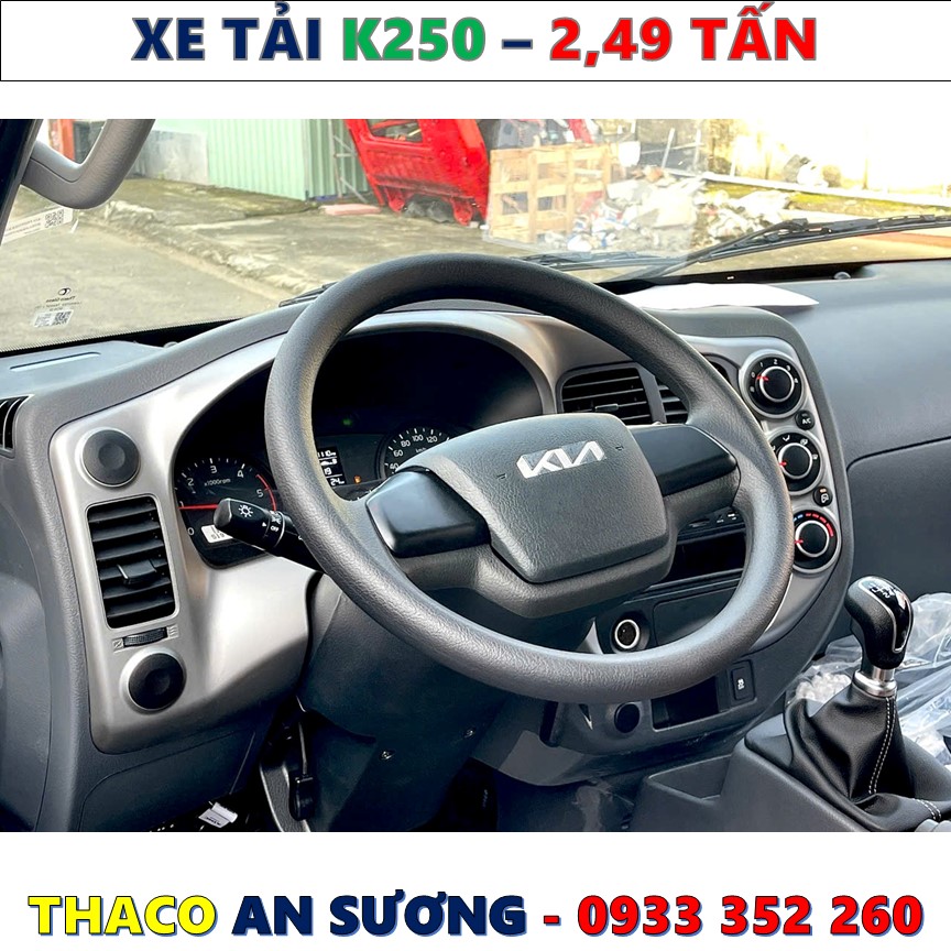 Hiện tại, Xe tải Kia K250 có sẵn, giao nhanh ở Showroom Kia An Sương – 2921 QL1A, P. Tân Thới Nhất, Quận 12, TP.HCM ( Ngã tư Bà Điểm). Quý khách hàng có nhu cầu tư vấn chi tiết, xem xe và lái thữ cảm nhận tốt nhất xin liên hệ Hotline : 0938.928.987 gặp Mr. Tuấn Thaco.