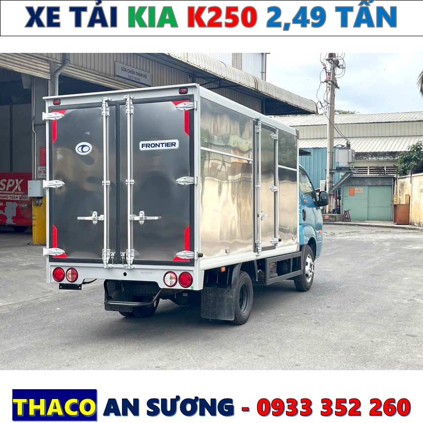 Hiện tại, Xe tải kia K250 thùng kín có sẵn, giao nhanh ở Showroom Kia An Sương – 2921 QL1A, P. Tân Thới Nhất, Quận 12, TP.HCM ( Ngã tư Bà Điểm). Quý khách hàng có nhu cầu tư vấn chi tiết, xem xe và lái thữ cảm nhận tốt nhất xin liên hệ Hotline : 0938.928.987 gặp Mr. Tuấn Thaco.