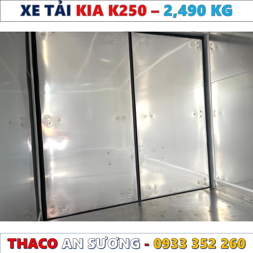 Giá xe tải chở Kia K250 thùng kín inox304 này có thể biến động tùy vào thời điểm quý khách ký hợp đồng mua bán, và do chính sách bán hàng của nhà máy với đại lý từng thời điểm để nhận được báo giá chính xác nhất quý khách hàng vui lòng liên hệ Thaco An Sương - Hotline: 0933.352.260 Mr Tuấn đẻ được tư vấn và hỗ trợ tận tình nhất. Cho vay 80 % giá trị xe - thủ tục nhanh chóng, lãi suất ưu đãi. Có xe giao ngay.