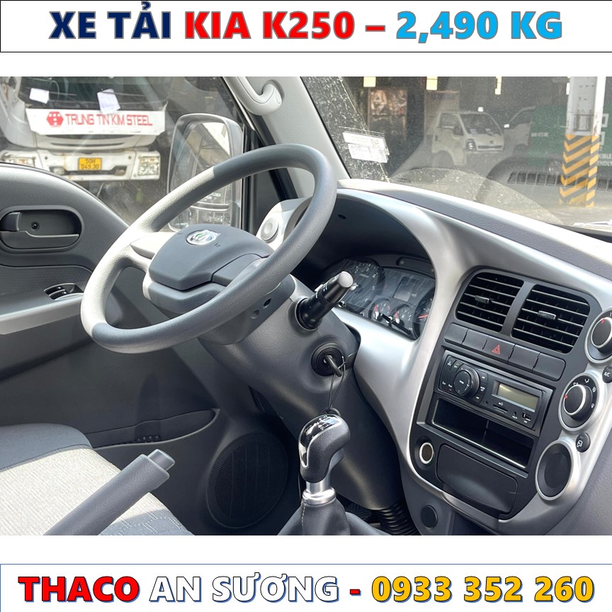 Xe tải KIA K250 full inox340 bố trí theo phong cách xe du lịch, dễ dàng thao tác.