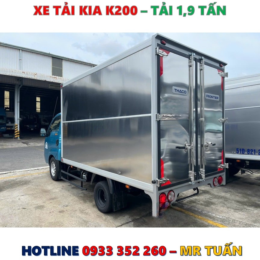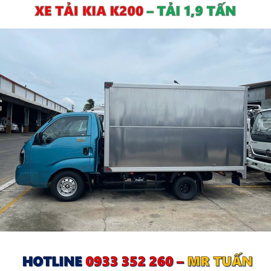 - Có nhiều tải trọng cho quý khách lựa chọn: 1.4 tấn (1t4), 1.99 tấn (1t99).Kia K200 1.9 tấn thùng kín có thể lưu thông vào thành phố, di chuyển linh hoạt trong việc vận chuyển hàng hóa.