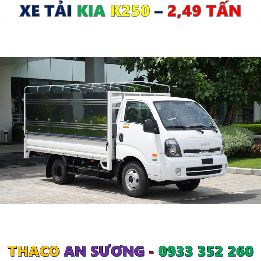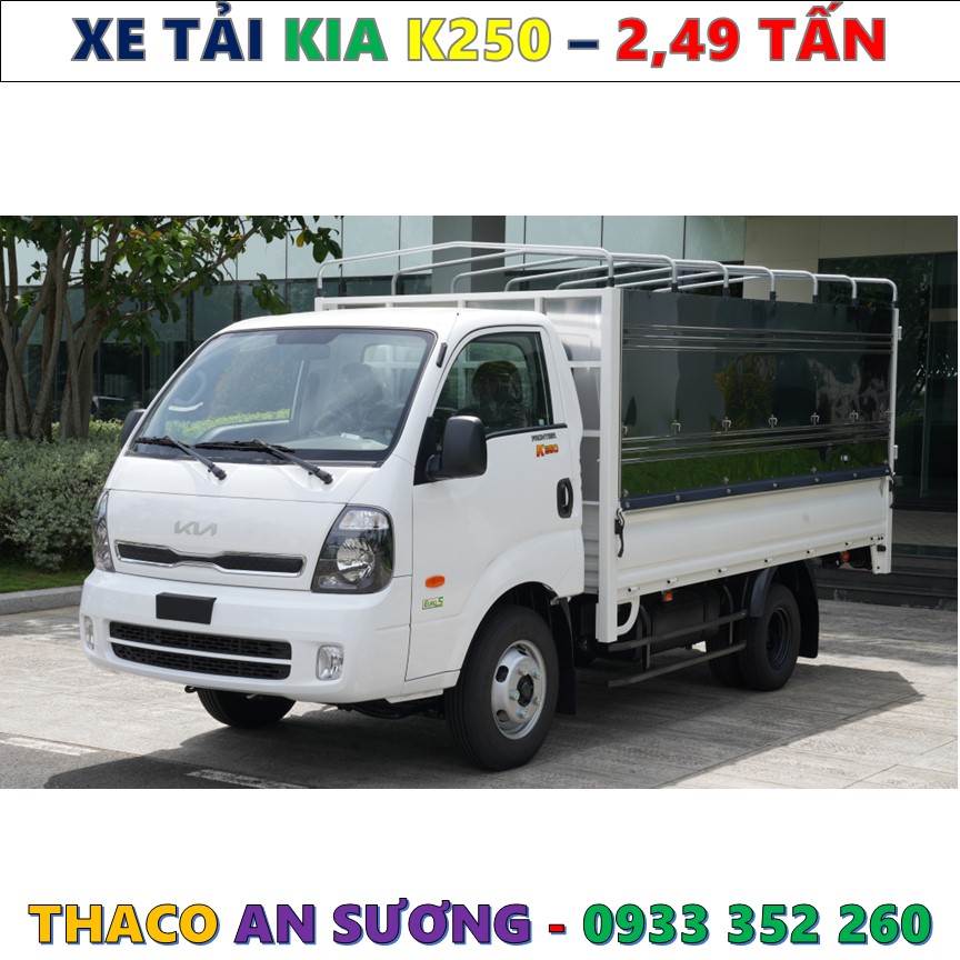 Hiện tại, Xe tải Kia K250 có sẵn, giao nhanh ở Showroom Kia An Sương – 2921 QL1A, P. Tân Thới Nhất, Quận 12, TP.HCM ( Ngã tư Bà Điểm). Quý khách hàng có nhu cầu tư vấn chi tiết, xem xe và lái thữ cảm nhận tốt nhất xin liên hệ Hotline : 0938.928.987 gặp Mr. Tuấn Thaco.