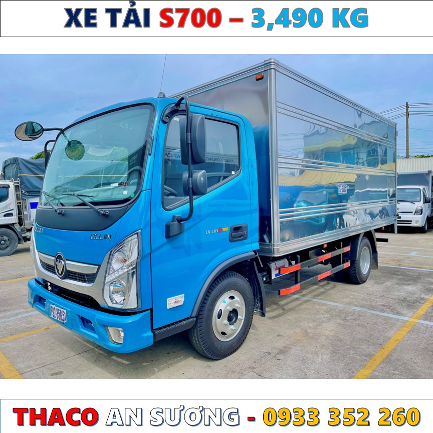 Xe tải Ollin S700 Thùng Kín trang bị Động cơ Foton 4J28TC, công nghệ Nhật Bản, chất lượng ổn định Thaco 3.5 tấn Foton 3T5 Ollin Thaco S700 thế hệ mới, tải trọng 3.49 tấn, được trang bị động cơ Foton 4J28TC, công nghệ Nhật Bản, dung tích xy lanh 2771cc, công suất cực đại 110Ps vận hành mạnh mẽ, tiết kiệm nhiên liệu với mức tiêu hao 10 – 12 lít/100km, thân thiện với môi trường.